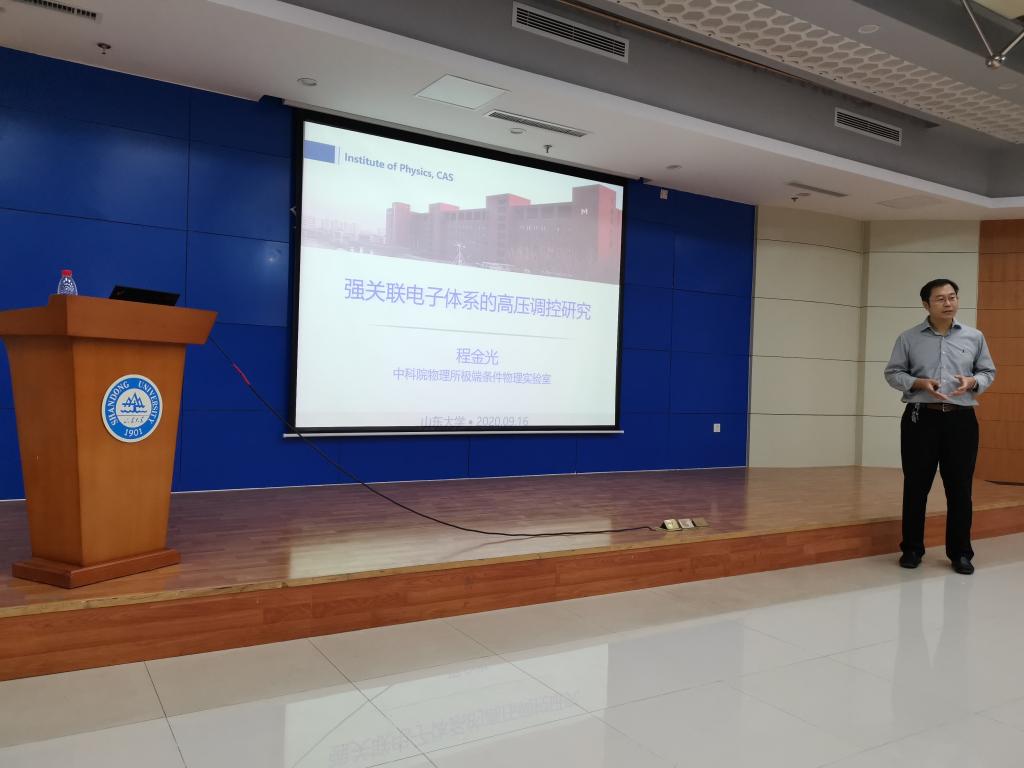在强关联电子系统,电荷、自旋、轨道和晶格等自由度强烈耦合并且存在复杂的多体相互作用,造成许多奇异的物理现象,包括高温超导、庞磁电阻、金属-绝缘体转变等等,这些现象挑战了现有的凝聚态理论框架,成为现代凝聚态物理的核心研究内容之一。作为决定凝聚态物质状态的基本物理参量之一,压力可以有效调控强关联体系中的相互作用,通过研究高压调控规律可以揭示微观机理,促进对强关联体系的认识和理解。报告中程金光研究员给大家分享了利用六面砧装置对几个强关联电子体系进行高压调控研究取得的进展,包括建立了FeSe单晶完整的高压相图,展示了电子向列序、反铁磁序和超导转变的相互竞争关系,揭示了高温超导与反铁磁临界涨落的密切联系;发现重电子掺杂的插层FeSe超导体在高压下会普遍出现第二个高温超导相;通过高压和磁场的联合调控,在HgCr2Se4中发现实现庞磁电阻效应的新机制。报告会气氛热烈,与会者与程金光研究员进行了互动,并就相关问题展开了讨论。